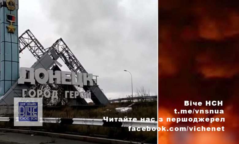 У донецьких пабліках тим часом публікували кадри з міста, які зафіксували заграву від пожежі та звуки вторинної детонації. Як припускає Telegram-канал Exilenova+, прилетіти могло на склад боєприпасів